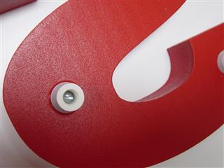 Diese Befestigungsart eignet sich besonders für Buchstaben, Logos und Zahlen aus Styropor, AXP / Styrodur, Kunststoff, Acrylglas oder ähnlichen Materialien.